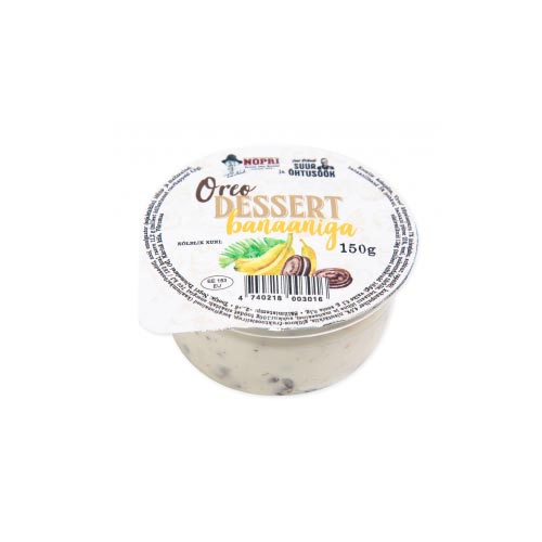 Joel Ostrati Oreo dessert banaaniga on sündinud Nopri kui puhtaima seitsme tärni talupiima pakkuja, Maarjamaa tuntuimate meelelahutus-tegijate ning sportliku teadlikkuse koostöös. Tele-hitti „Suur õhtusöök“ luues on tennise- ja jalgrattasportlasest kokanduskunstnik jälginud, millised ideed ja pakkumised rahva lemmikutel on. Kalevi maitsetega harjunud inimesed tahavad Oreot. Tervislikku ja terviklikku elujõudu ja -rõõmu jagav banaan ei tee paksuks, vaid pakatavaks – teotahtest näiteks.